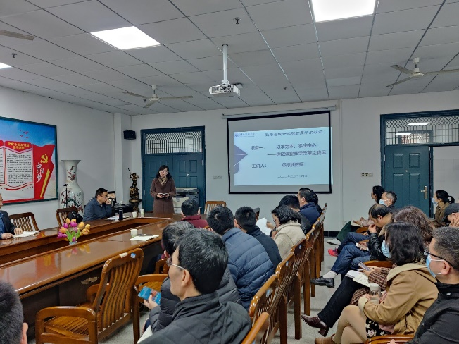 作为主持过多项省教研项目、荣获一系列教学成果奖、领衔省级教学团队的教学名师,郑绿洲教授以报告的形式分享了主题为“以本为本、学生中心——适应课堂教学改革之我见”的经验交流。她从如何适应新课改的要求、建设高水平本科教育、提高人才培养质量为切入点,从回归常识,回归本分,回归初心,回归梦想四个方面进行了深入解读,并且强调老师们应着力推动课程内容更新与课堂形式革新,重塑教育形态。在课程建设上,她希望老师们应把握好国家教育教学改革方向,积极打造具有高阶性,创新性和挑战度的一流课程。