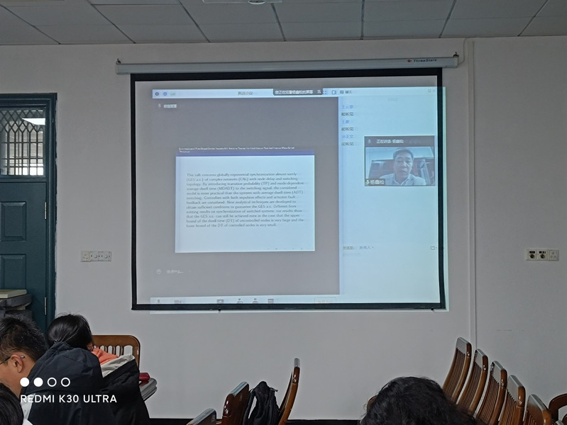 2022年3月26日上午,四川大学杨鑫松教授和中国矿业大学朱松教授应邀来5楼自拍 进行线上的学术交流,报告会由5楼自拍 孙文教授主持,5楼自拍 的应用数学、运筹学与控制论专业研究生共同聆听。