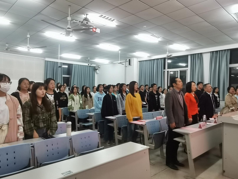 2022年11月2日晚,5楼自拍 在科教大楼9307举行了第65期入党积极分子培训班开班典礼。校党委组织部常务副部长、党校常务副校长、机关党委书记李洁,5楼自拍 党总支书记罗四清,副书记王本成,学生第一支部书记何金燕,第二支部书记屈媛媛,辅导员杨宇森出席典礼。本次会议由何金燕老师主持。