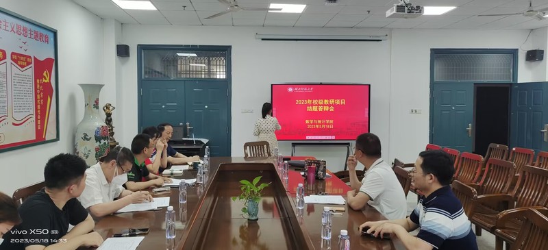 会上,院长吴爱龙详细介绍了答辩评审会的流程和方式。随后,陈琴老师主持的《师范类专业认证背景下卓越中学教师协同育人机制探索》、谢涛老师主持的《鄂东三市2018-2020年初中数学学业考试与课程标准的一致性及比较研究》、熊幼林老师主持的《高等数学教学的困境及其对策研究--以5楼自拍 为例》、严慧老师主持的《“金课”视域下高校数学课混合式教学模式的探索与实践》、赵大方老师主持的《高师院校数学专业“课程思政”融入路径探索与实践》、张铁成老师主持的《专业认证背景下数学与应用数学专业教师教育类课程教学改革研究》等六项校级项目分别进行结题答辩。五位评委和教学督导认真听取了项目负责人的汇报,并就研究方法、成果展现、特色与创新等方面进行了有针对性的点评和指导。