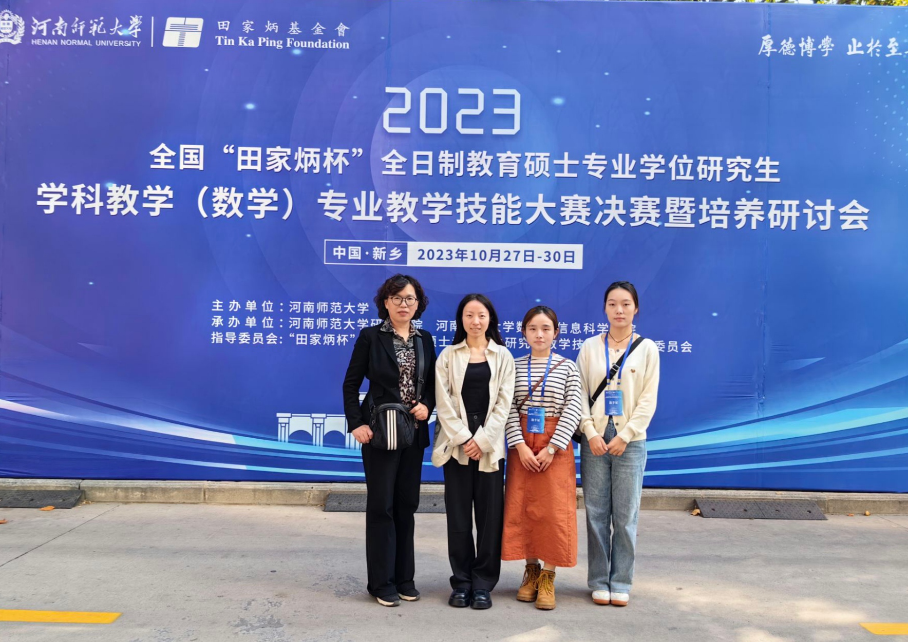 2023年10月29日,由全国教育专业学位研究生指导委员会主办、河南师范大学承办的全国“田家炳杯”全日制教育硕士学科教学(数学)专业教学技能大赛决赛圆满落下帷幕。5楼自拍 2022级学科教学(数学)研究生崔云鸽(指导老师:郑绿洲)、乐玉鹏(指导老师:陈引兰)、方凯月(指导老师:严慧)荣获三等奖。