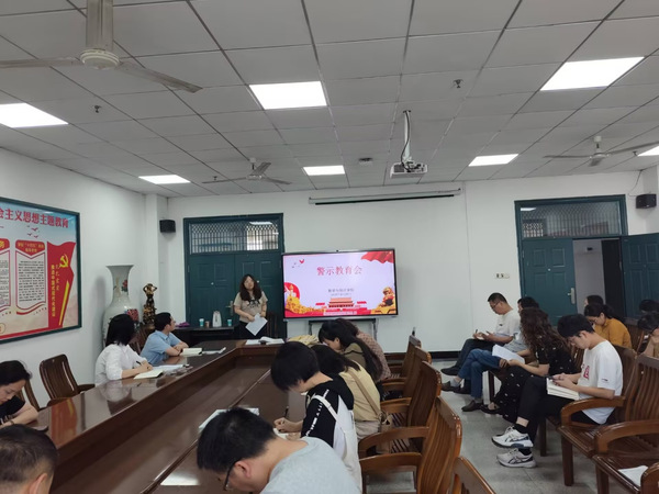 而后,支部开展了警示教育大会。由支部宣传委员胡学敏同志带领大家进行了理论学习部分,深入了学习《习近平关于加强党的作风建设论述摘编》和中央八项规定及其实施细则精神,扎实开展形式多样的警示教育。党委书记刘琼芳同志带领全体党员进行案例学习,逐个宣读学习《违反中央八项规定及其实施细则精神典型案例》,引导党员、干部检身正己,动真碰硬、真查实改。