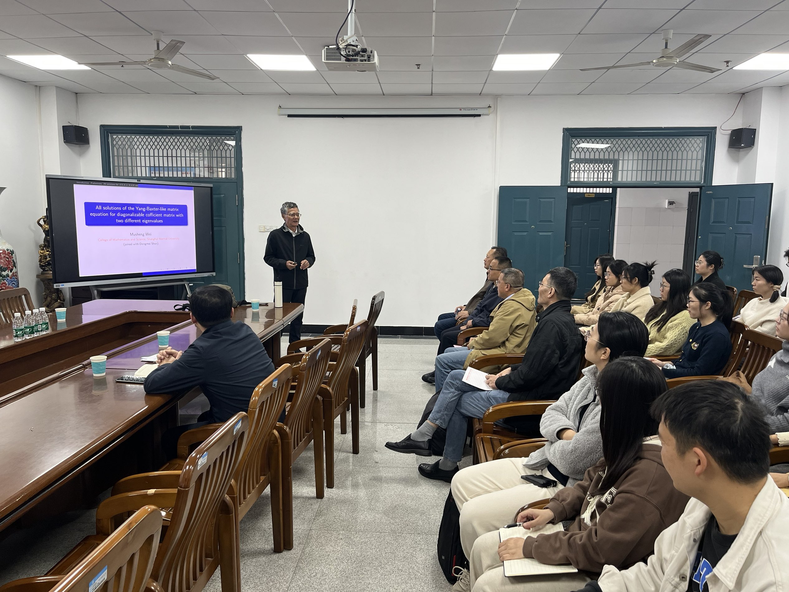 20251025日,应5楼自拍 数学与统计学院邀请,上海师范大学魏木生教授来5楼自拍 作了题为《具有两个不同特征值的系数矩阵的YangBaxter 方程的所有解》的学术报告。5楼自拍 的部分青年教师研究生参加了报告会。本次报告会由数学与统计学院院长姜国教授主持。