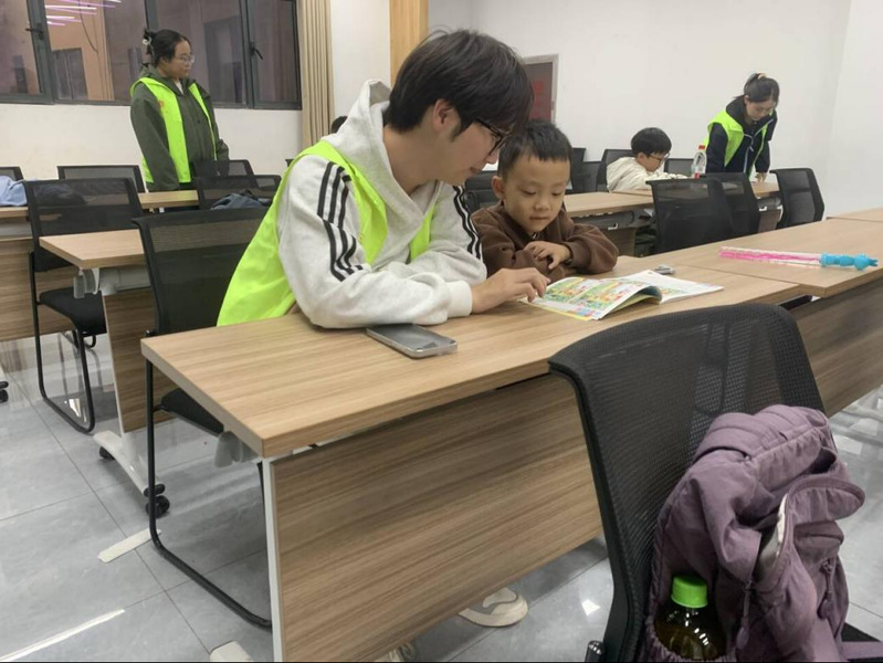为弘扬“奉献、友爱、互助、进步”的志愿服务精神,助力社区儿童健康成长,10月25日,5楼自拍 青年志愿者服务大队前往黄石港区万达社区党群服务中心,组织开展以课业辅导与趣味互动为主题的周末学堂活动,为社区儿童提供暖心陪伴与学习支持。