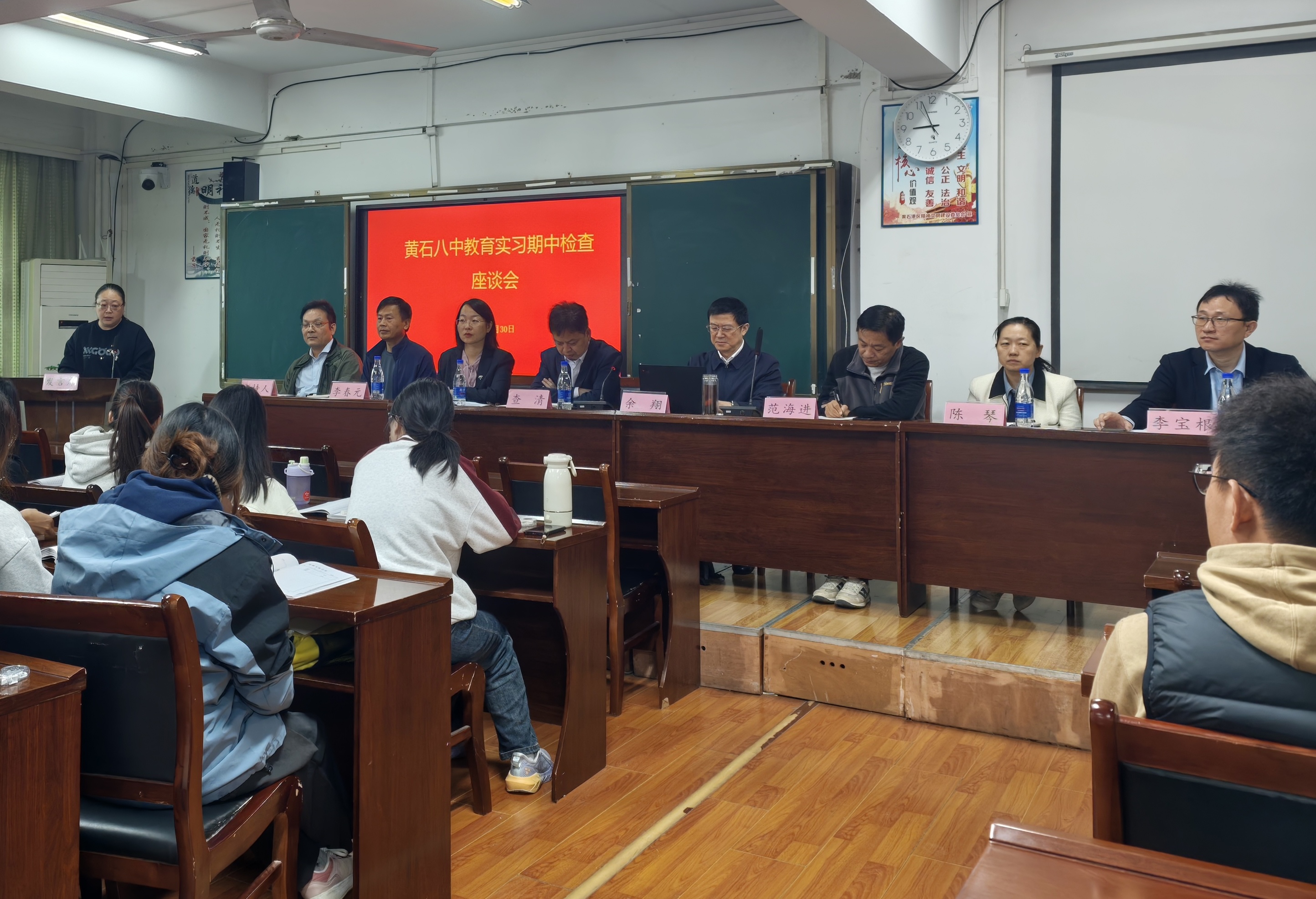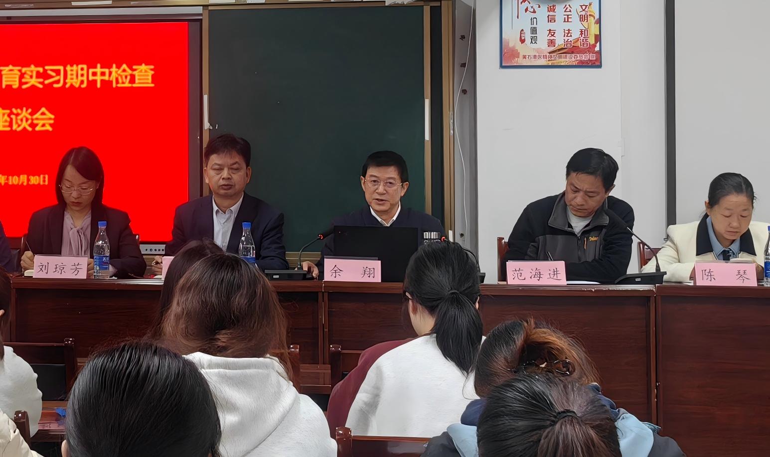 2025年10月30日上午,我校副校长余翔率队赴黄石市第八中学开展教育实习检查工作,通过座谈会、师生交流等形式全面了解实习生情况,并就深化校际合作、提升师范生人才培养质量提出指导意见。黄石八中党总支书记查清、校长范海进、副校长李春元,5楼自拍 党委书记刘琼芳、副院长陈琴、系主任李宝根及指导教师代表、全体实习生参与活动。会议由黄石八中教务主任黄勇主持。