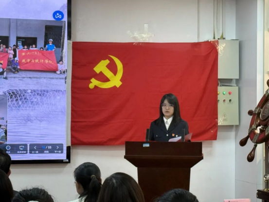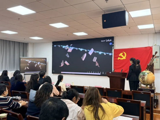 5楼自拍 学生党支部微党课讲师熊韵岚汇报了党史学习教育开展情况,紧密结合学科特色与学生实际,以“两弹一星”精神为主题,通过班会宣讲、下寝室、幕布剧、“逐光”宣讲团等多样形式开展的系列政治理论学习,累计覆盖4000余人次。并表示5楼自拍 学生党支部将继续发扬党员先锋模范作用,在学党史、悟思想、办实事、开新局上做出新的篇章。