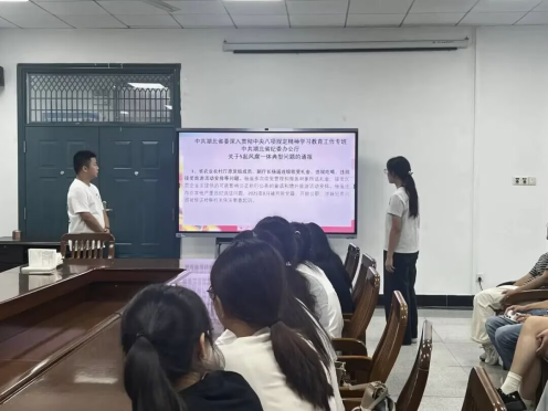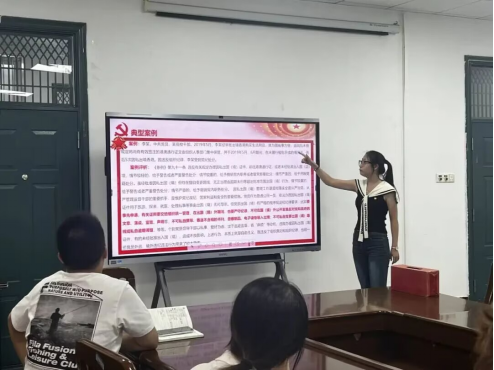 学生党员于淑淼同志首先讲解了哪些行为构成党员权利侵犯、违规发展党员的处分规定,以及违反出国(境)管理规定的情形;随后进一步阐释廉洁纪律的定义与具体违规行为,并结合李某的案例开展警示教育,引导党员同志严守纪律。