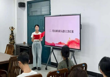 学生党支部负责人张飘尹同志围绕落实“三会一课”制度、第70期积极分子培养考察、18名预备党员按期转正、接收14名发展对象为预备党员、毕业生党员档案转接、“学习帮”、“领航”直播间等特色活动开展及毕业生党员风采宣传等工作作出详细总结。