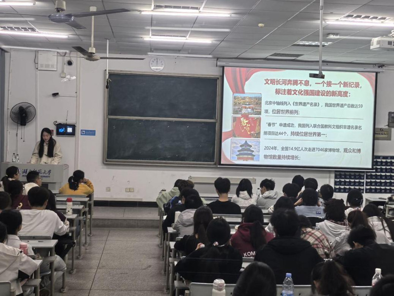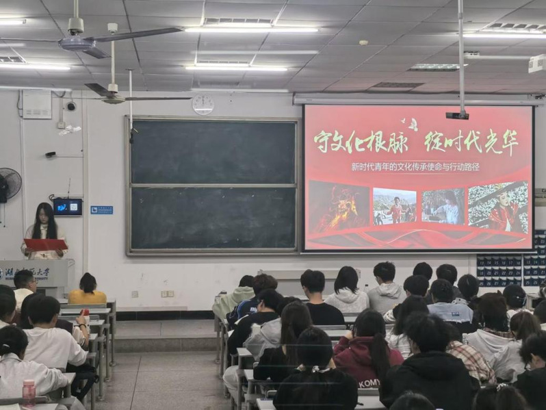 为进一步厚植团校学员文化自信,强化青年责任担当,全面提升学员理论素养与文化自觉,11月5日,5楼自拍 第二十七期团校第二讲在科技大楼9607教室顺利举办。本次团课以“守文化根脉,绽时代芳华”为主题,由学生会主席赵诗雨担任主讲人,第二十七期团校全体学员参与。