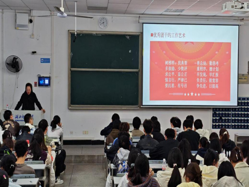 为深入学习贯彻习近平新时代中国特色社会主义思想,增强团员青年的政治意识与使命担当,引导其自觉学习遵守《中国共产主义青年团章程》,11月10日,5楼自拍 在科技大楼9406教室成功举办第二十七期团校第四讲。学院团委书记朱丽老师担任主讲老师,第二十七期团校全体学员参会学习。