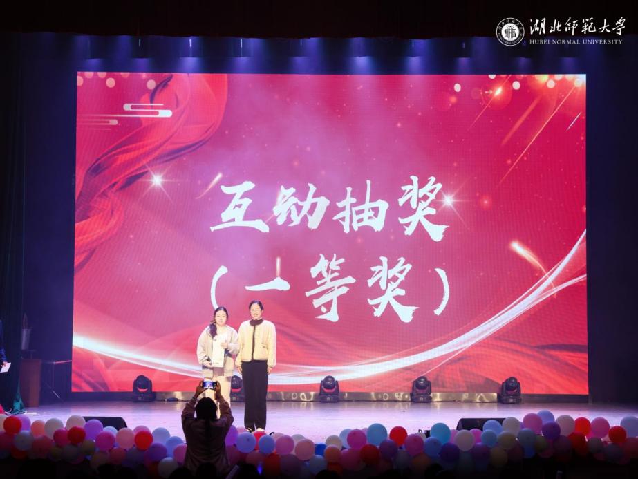 晚会中还设置了抽奖环节,由袁曼、赵大方、陈琴现场抽取一、二、三等奖,增强了师生互动,营造了轻松愉快的现场氛围。