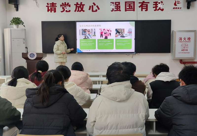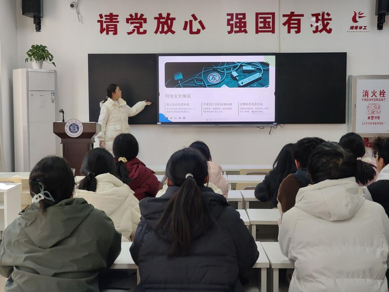 本次宣讲活动围绕三大核心内容展开:日常安全防护板块,聚焦宿舍用电规范、消防隐患识别、财产安全防护等内容,结合“私拉电线引发火灾”“违规电器致险”等真实案例,明确了隐患规避与应急处理方法;文明规范部分结合校园行为案例,梳理了公共区域、集体生活的行为准则;基础法律常识环节则聚焦青少年相关条款,解读了权益保护与违法风险的边界。