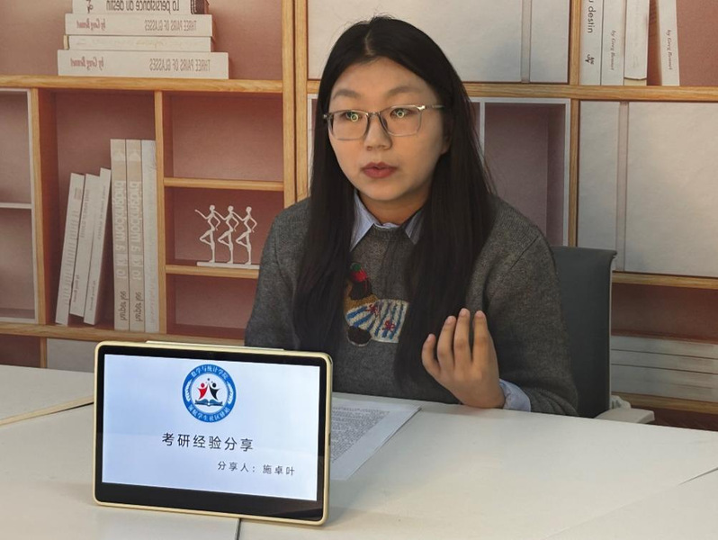 22级本科生李焕然从学科竞赛与全面发展的关系入手,阐述了竞赛对促进严谨学风、提升专业能力的重要意义,并分享了备赛经验与方法,为同学们参与各类竞赛提供了清晰指引;赵慧希同学聚焦四六级备考,从听力、阅读、写作与翻译三个模块展开,介绍了科学的学习方法与应试策略,强调良好学习习惯对学业安全与持续发展的重要作用。研究生党员施卓叶围绕考研规划,系统讲解了时间管理、复习策略与心态调节等方面的实用技巧,引导同学们树立目标意识,筑牢学业基础,实现稳步提升;研究生党员于淑淼结合教学实践经历,分享了在课堂学习与技能训练中积累的心得,鼓励同学们以踏实严谨的态度面对学业挑战,夯实专业根基;刘晓锋同学则从征兵政策入手,详细介绍了参军条件、报名流程及相关优惠政策,强调了国防意识与个人安全的重要性,激发同学们将爱国情怀融入学业与人生规划。