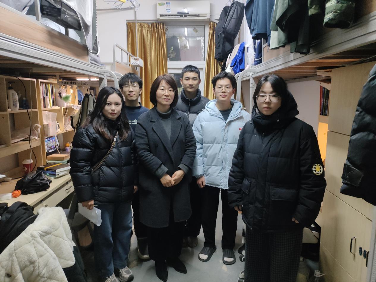 为全面掌握学生寒假返校实况,强化新学期学业引导、安全管理与学风建设,31日晚17时,5楼自拍 精心组织开展寒假收假查寝及晚点名活动。学院党委书记刘琼芳、院长姜国、党委副书记袁曼,带领全体班主任、辅导员及学生干部深入学生宿舍,走访探望返校学子,助力同学们快速调整状态,以饱满精神投入新学期学习生活。